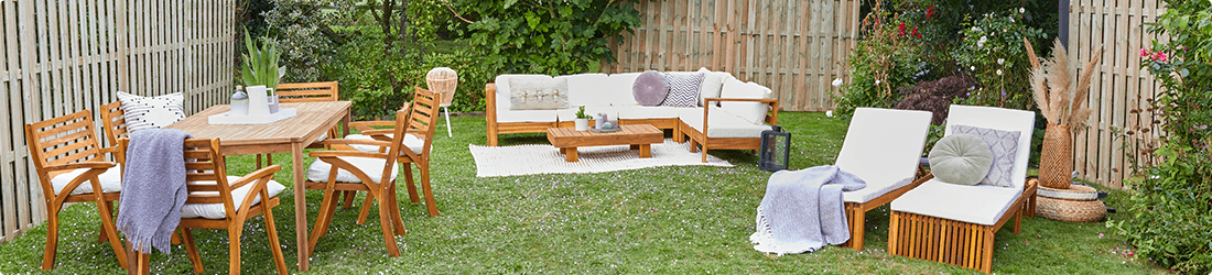 De nerven en vezels van het gekozen hout geven een natuurlijke charme aan je tuin. Zorg ervoor dat je je meubelen beschermt tegen de elementen, dus berg ze op of dek ze af. Om je tuinmeubelen er als nieuw uit te laten zien, is regelmatig oliën of waxen aan te raden.