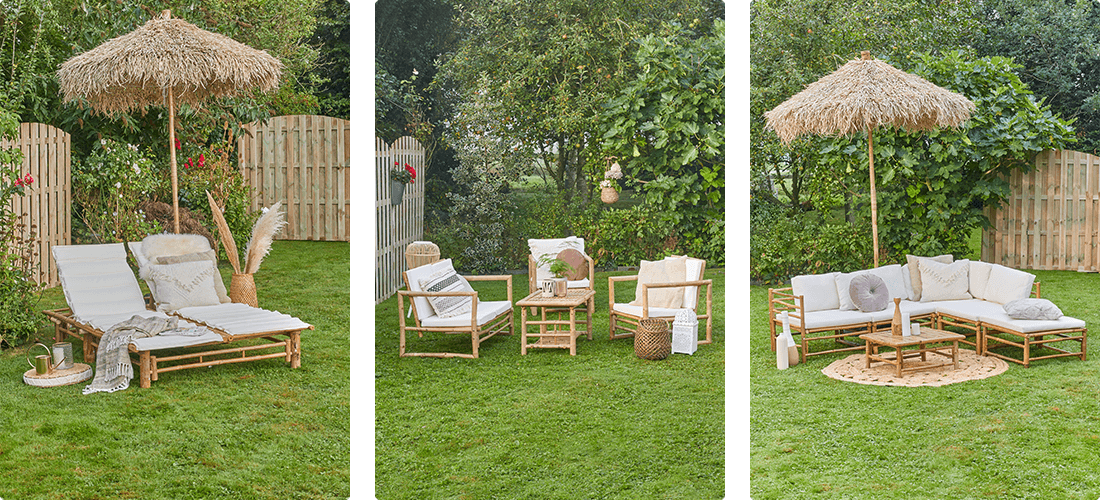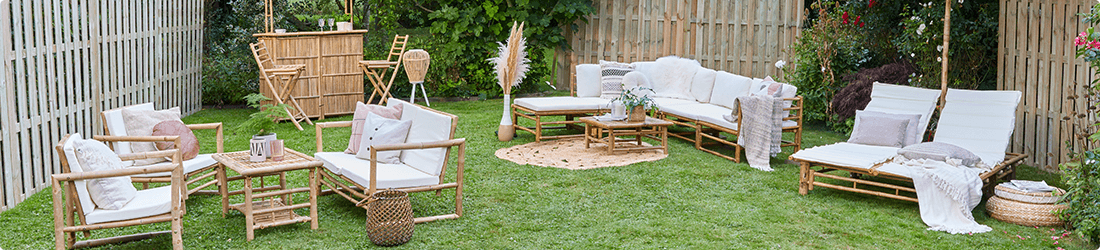 Probeer een aantal van onze ideeën voor het stylen van je bamboe tuinmeubelen: